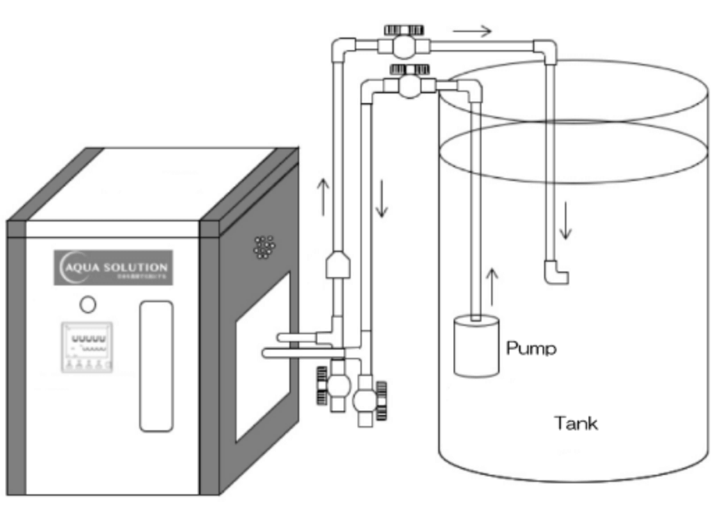 This is a system in which water is stored in a tank or underground tank, sucked into the device by a