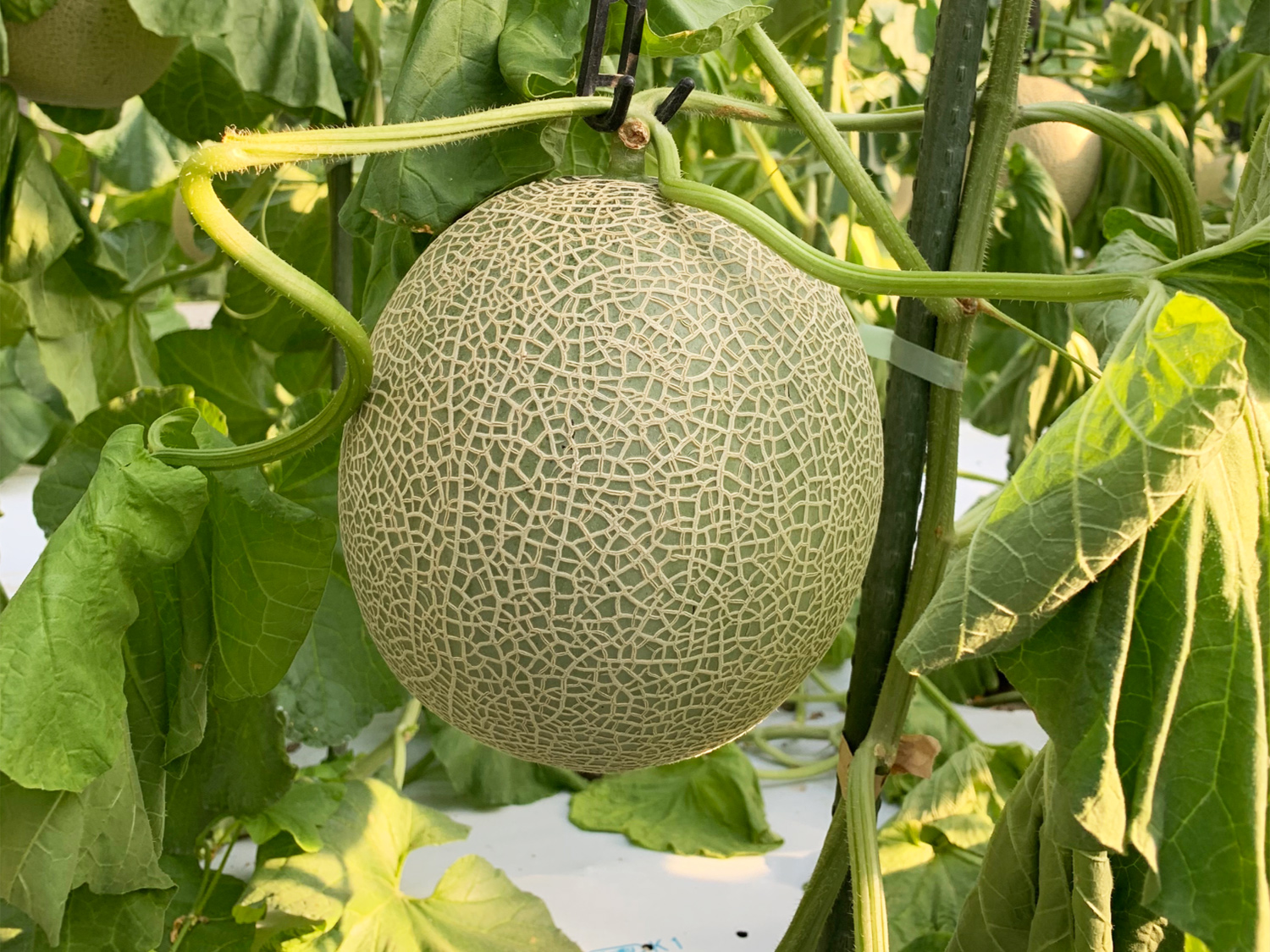 メロンの名産地として知られる熊本県。K様のハウスでは、主に贈答用として人気のある高級赤肉メロン「オレンジハート」を栽培。天候に関わらず安定的な収穫が期待できる「立体栽培」を採用しています。