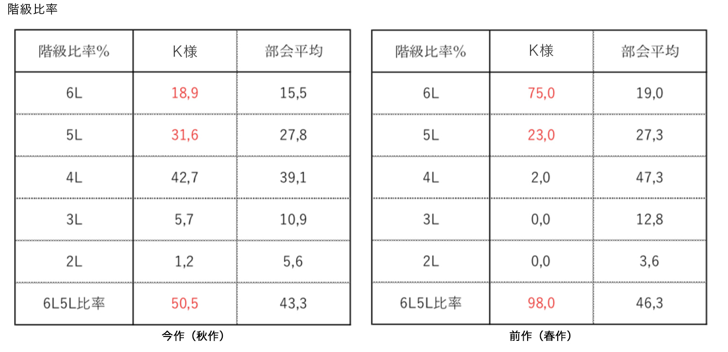 春作では5L、6L合わせて98%と高い比率となりましたが、秋作50.5%と大幅ダウンという結果になりました。