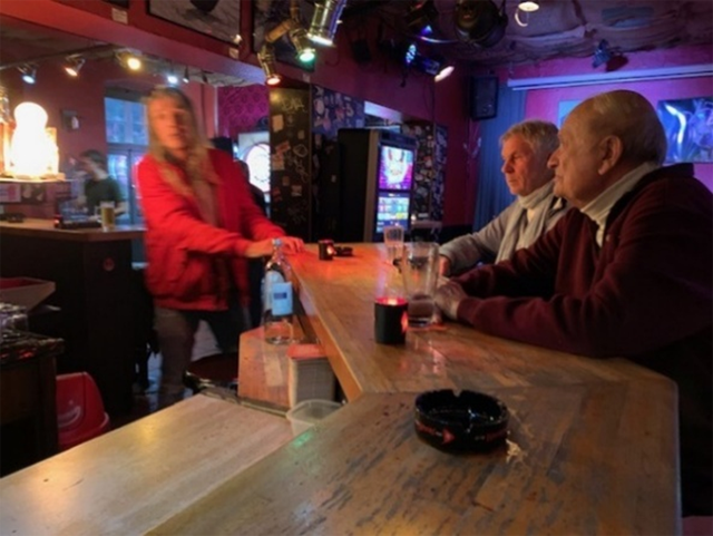 カウンターに座った。一人の赤いジャンパーの酔っ払いがいた。この相手をしていたカウンター席の端に腰かけている老人二人もゆっくりとビールを飲んでいた。おそらく、年金生活者らしい。なぜそう思ったのかと言えば、日本でも居酒屋で同じような光景をみたことがあったからだ。飲むスピードが遅かった、さらに、1人がもう一人を気にしながら飲んでいる。